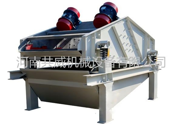 脱水筛采用了双电极自同步技术,通用型偏心块、可调振幅振动器。主要由筛箱、激振器、支承系统及电机组成。通过胶带联轴分别驱动两个互不联系的振动器作同步反向运转,两组偏心质量产生的离心力沿振动方向的分力叠加,反向离心抵消,从而形成单一的沿振动方向的激振动,使筛箱做作往复直线运动。
