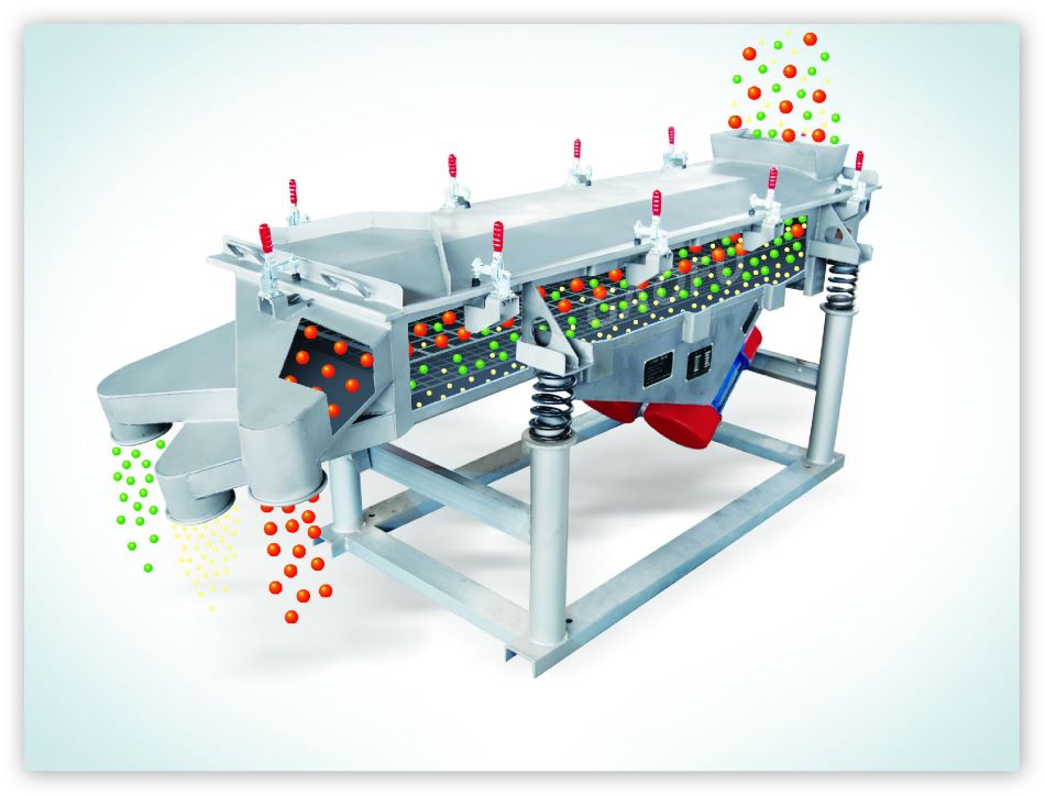 SZF直线振动筛利用电机作为振动源,使物料在筛网上被抛起,同时向前作直线运动,物料从给料机均匀地进入筛分机的进料口,通过多层筛网产生数种规格的筛上物、筛下物分别从各自的排出。具有耗能低、产量高、结构简单、易维修、全封闭结构,无粉尘溢散,自动排料,更适合于流水作业。