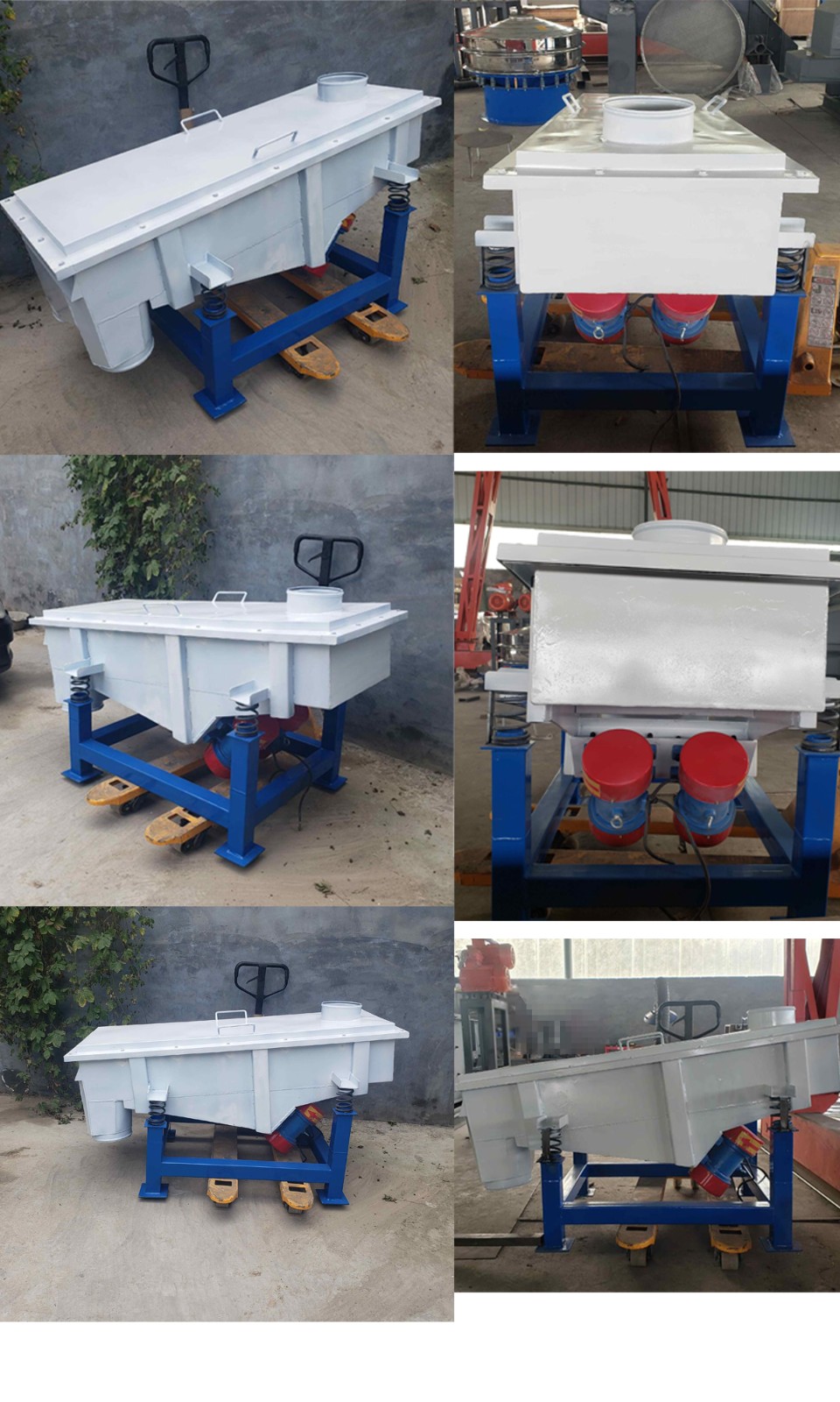 SZF直线振动筛利用电机作为振动源,使物料在筛网上被抛起,同时向前作直线运动,物料从给料机均匀地进入筛分机的进料口,通过多层筛网产生数种规格的筛上物、筛下物分别从各自的出料口排出。具有耗能低、产量高、结构简单、易维修、全封闭结构,无粉尘溢散,自动排料,更适合于流水作业。