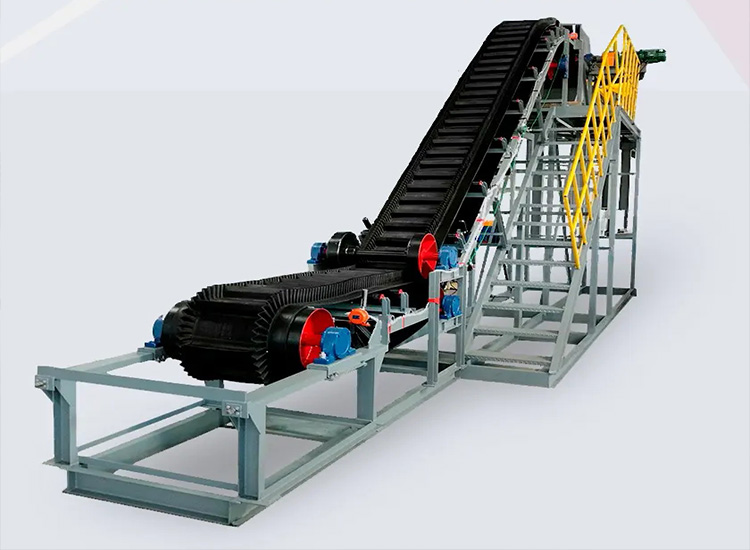 2、挡边皮带输送机用于斜坡输送,可以把低处产品提升到一定的高度,用于物料提升,在提升的过程中,可以将散料放在一格一格里面,在倾斜的角度中,不会滑;