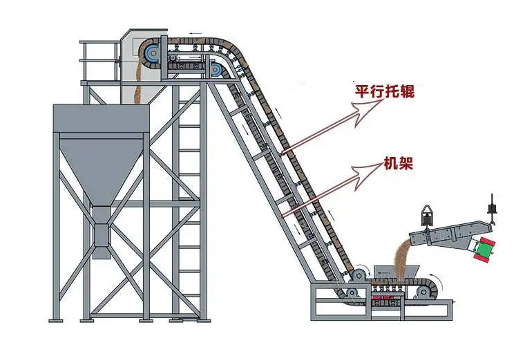 3、占地面积小,角度不受限制,大角度可以做到90度(建议70度以下),还有是输送速度快,成本低,可以输送到20米以上的高度,还可以和其它水平输送机对接,达到长距离的输送;