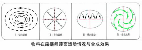 摇摆筛的筛和簸两种运动使物料在筛网上面进行螺旋渐开线的运动,这种运动轨迹使物料能在有效的筛分面积上,走相对长的路,以提高筛分精度,独特的设计使物料在网上运动的时间要比其他筛机长,所以筛分产量也相对较高。