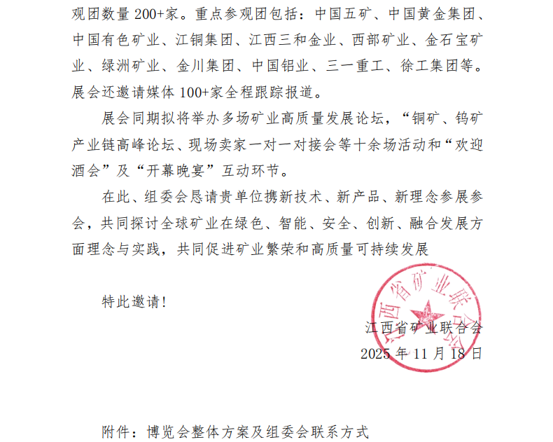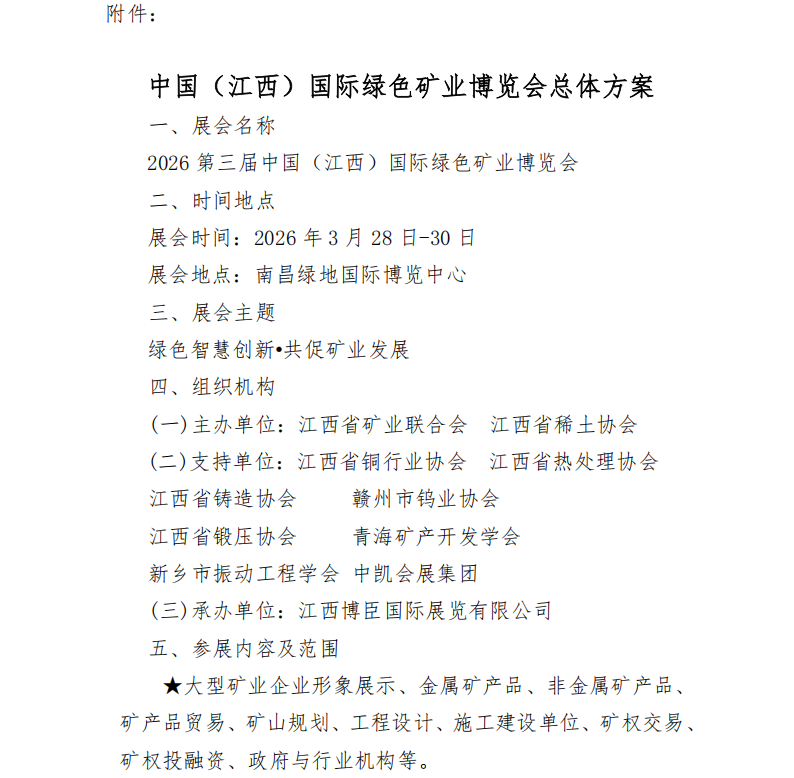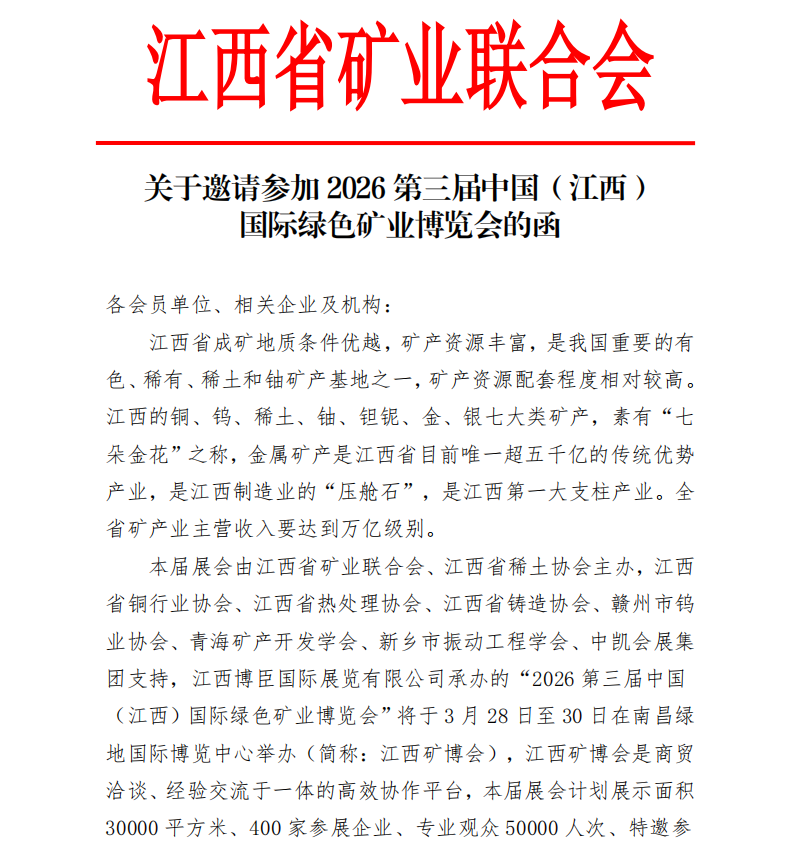关于邀请参加 2026 第三届中国(江西) 国际绿色矿业博览会的函