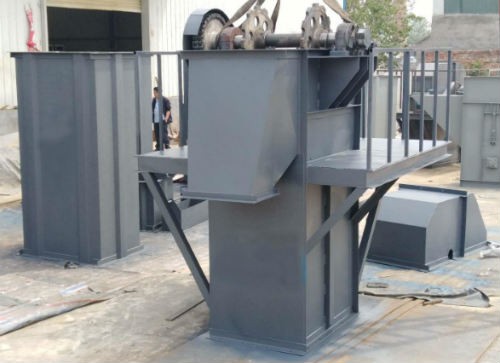 1.上部装置:安装有轨道(双排道),防止链条摆动,逆止器,防止料斗回转,物料阻满下部机壳,卸料口装有橡胶板防止回料。