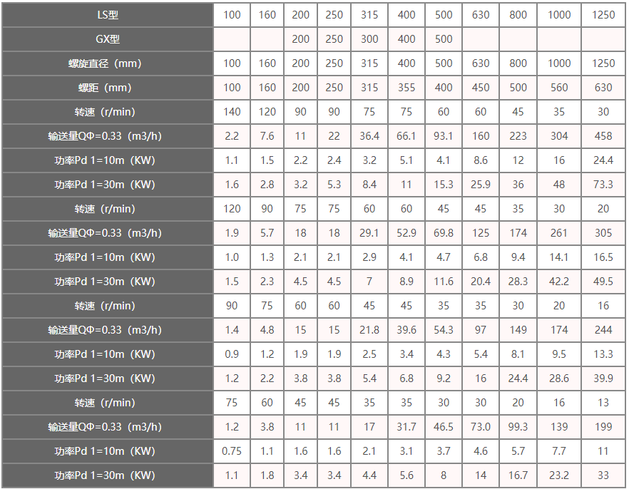 不锈钢螺旋输送机技术参数