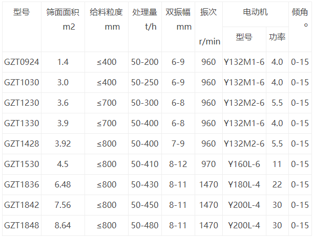 GZT系列振动给料机新型振动电机驱动,该系列振动给料机用于粗破碎机前的均匀给料,同时由于棒条筛面的作用,又能除掉泥土等细小物料,达到预先筛分的功能,能够提高粗碎能力,该系列振动给料机新型振动电机或激振器激振,框架式环槽铆钉铆接,锰钢制造的护板和棒条,结构坚固,强度高,耐冲击,耐磨损,使用维护方便。