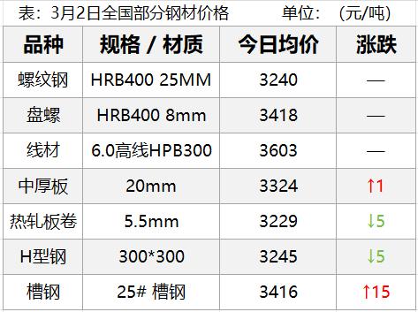 3月2日,钢材现货市场稳中下跌,期货市场主要品种主力全部上涨,其中螺纹、热卷、铁矿涨1%左右,焦炭涨1.38%,焦煤涨1.06%。随着地缘冲突加剧,市场避险情绪升温,加上两会政策预期支撑,黑色系集体走强,明日钢价......